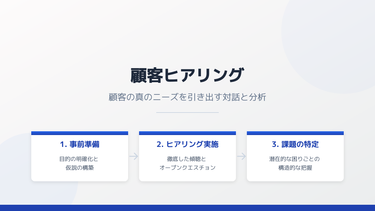 - 顧客課題の徹底的な深掘り: 顧客が抱える本質的な課題を正確に捉えることが成功の第一歩です。