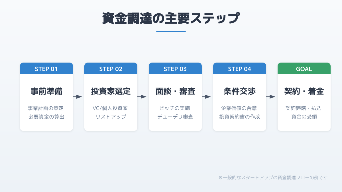 これらの要点を整理すると、投資家の選別基準が厳格化する中、自らの強みを証明しながら着実に事業を前進させる姿勢を示すことが、確実な 資金調達 につながります。企業としての基盤を固め、変化に強い経営体制を構築してください。